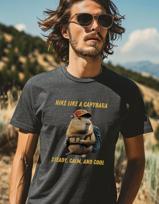 Hike like a Capybara - Steady Calm and Cool - Funny Gift, Hiking Vintage T-Shirt, Retro 90s Forest Adventure Mountains Shirt