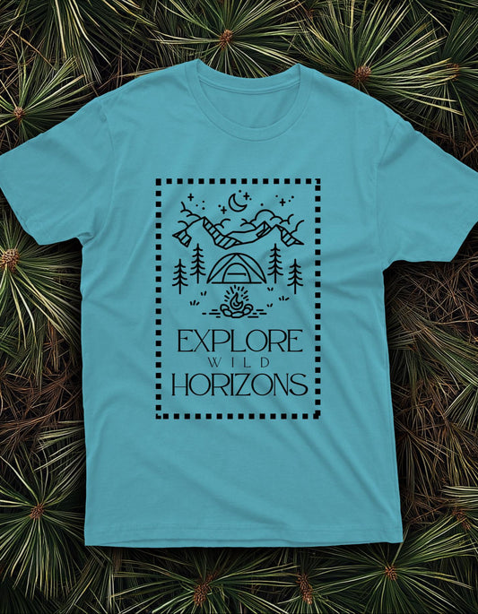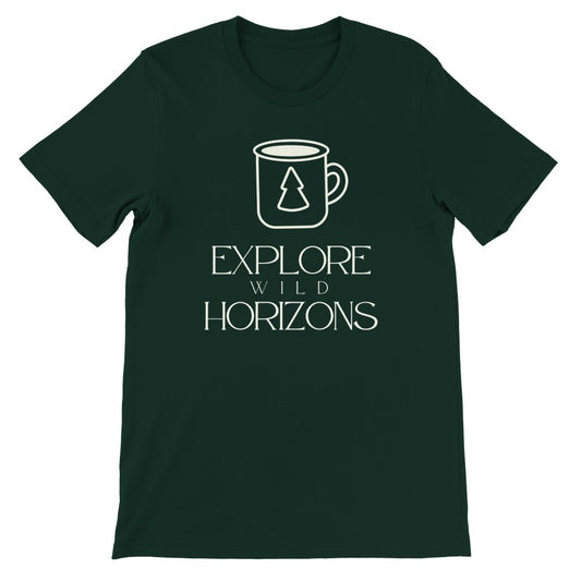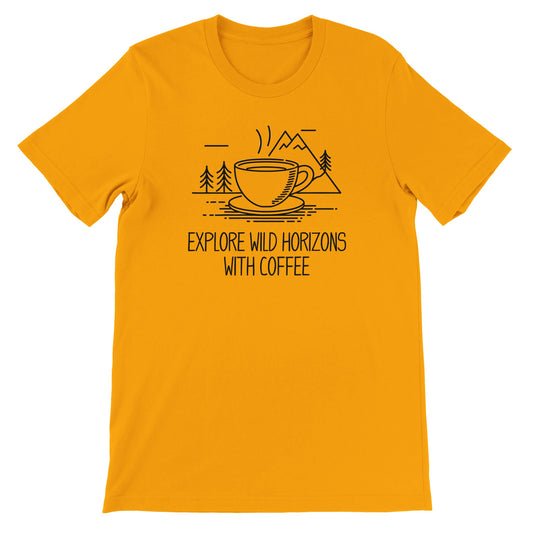 Explore Wild Horizons Coffee T-Shirt - Forest Coffee Lover Tee - Adventure T-Shirt - Nature Graphic Shirt - Tree Mug Hiking Shirt