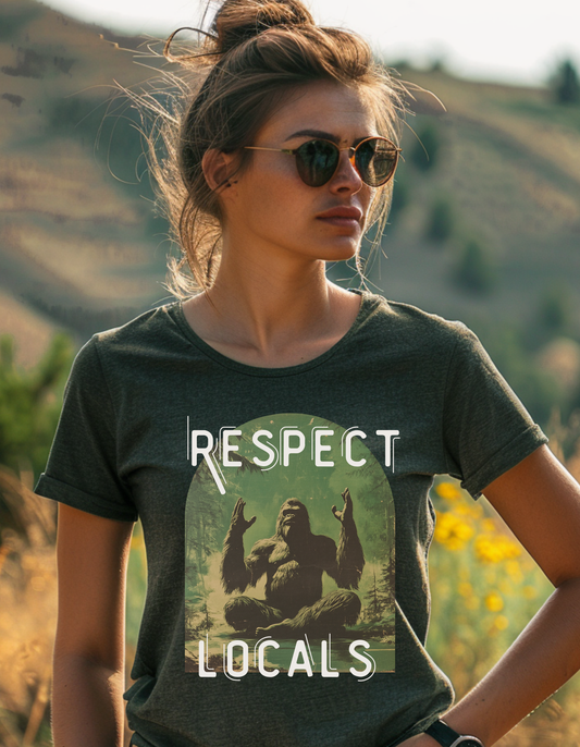 Respect The Locals Big Foot Sasquatch Yeti Yoga In The Forest Vintage T-Shirt, Retro 90s Yoga T Shirt, Unisex Funny Yeti Graphic Shirt