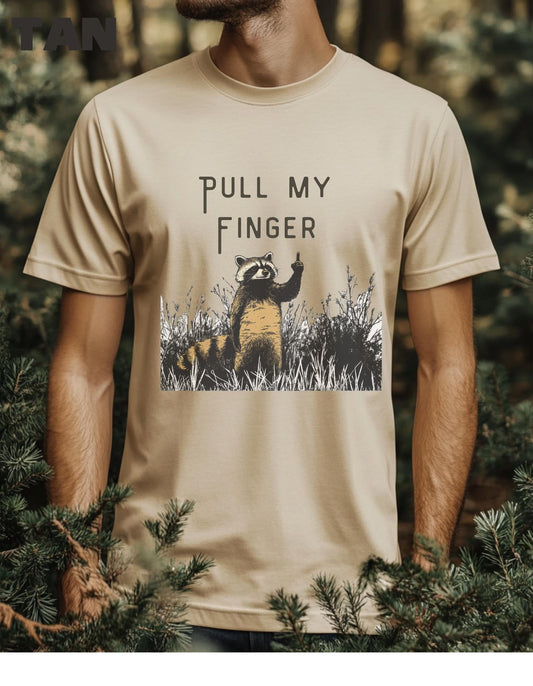 Funny Raccoon Shirt, Pull My Finger, Comfort Funny Animal Lover TShirt, Unique Gift for Raccoon Lovers, Funny gift for dad, Hiking Gift